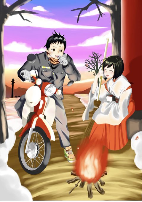 新年絵間に合わなかったから2年前正月に描いた絵をぺたり 応援したいカップル、、、!! 果たして電柱の送電先はどこに行くのか、、、!! #冬の創作クラスタフォロー祭り #絵描きさんと繋がりたい #イラスト好きな人と繋がりたい #正月イラスト