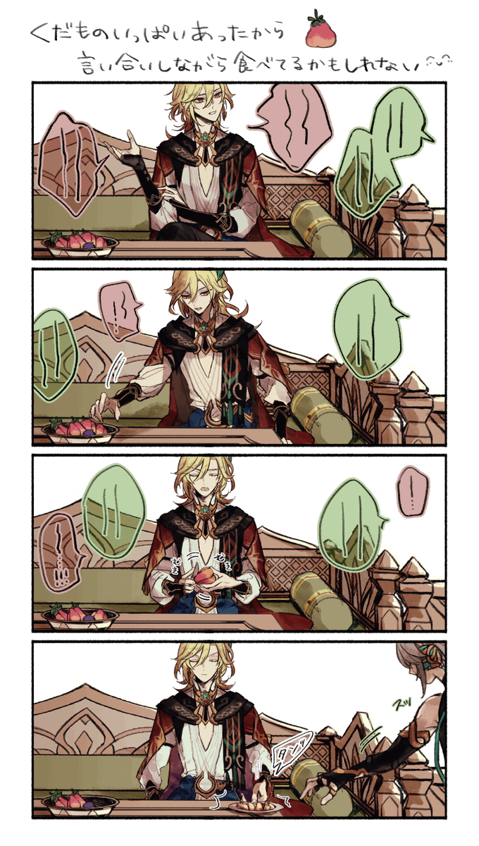 おうちに果物がいっぱいあったから言い合いしながら食べてるかもしれない妄想😊🍑🍈(カヴェアル)