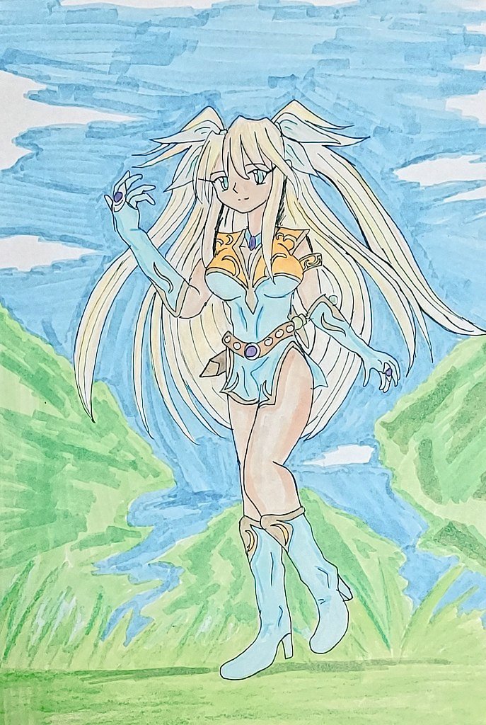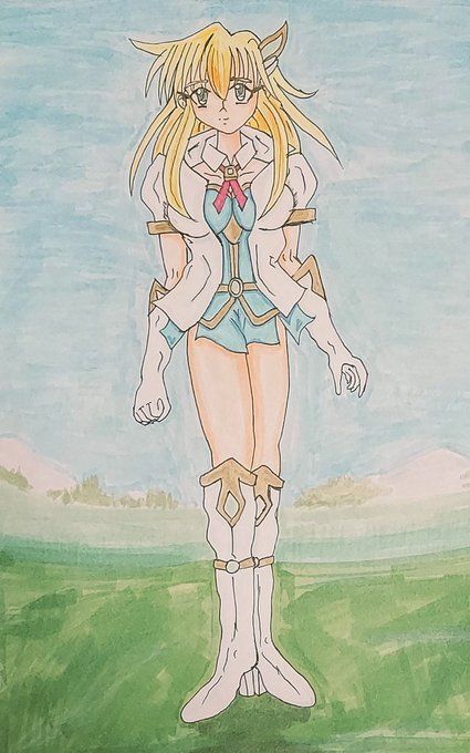 #オリキャラは性癖の見本市 かつてはエルフ属性もあった当時に描いたエルフのオリキャラ、フィリスです。 銀髪ポニテで緑色のリボンにミニスカと言うスタイルですが、今日になって 何でこのデザインになったのだろうかと思ったら、当時デザインしていた警備員のお姉さんがベースになっていた・・・