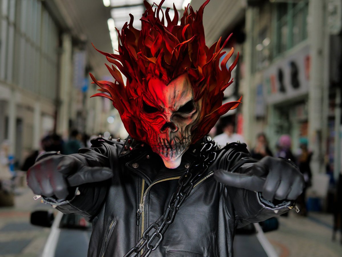 何回も言って申し訳ないかどコミコンメッチャ楽しかったwゴーストライダーのコスも多くの方々にカッコイイ!と言って頂いてマスク造形や衣装探しで何店もはしごを頑張ってホントに良かった! #大阪コミコン #大阪コミコンコスプレ