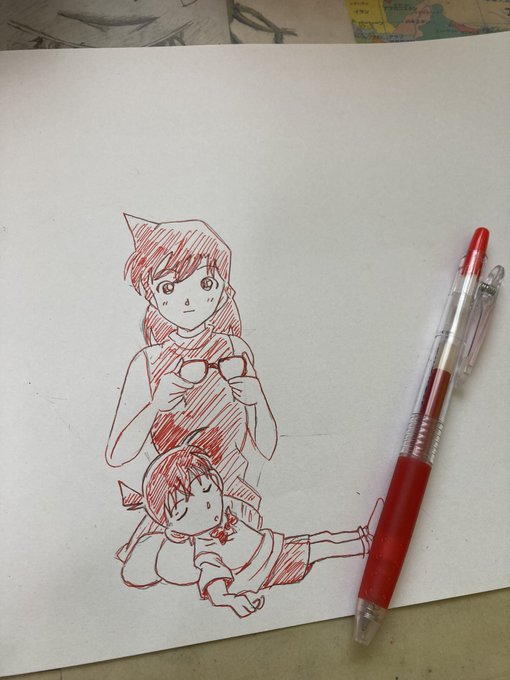 コナンくん&蘭ちゃん! #コナン模写 #ペン画