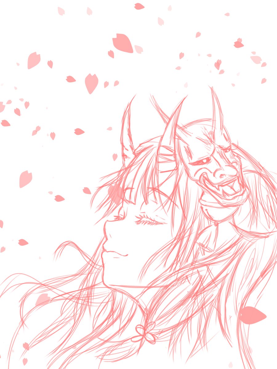 #百鬼絵巻 #百鬼あやめ 落書き 『桜吹雪とお嬢』