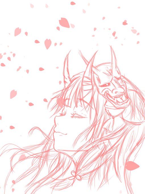 #百鬼絵巻 #百鬼あやめ 落書き描いてからからかなり時間かかったけど『桜吹雪とお嬢』