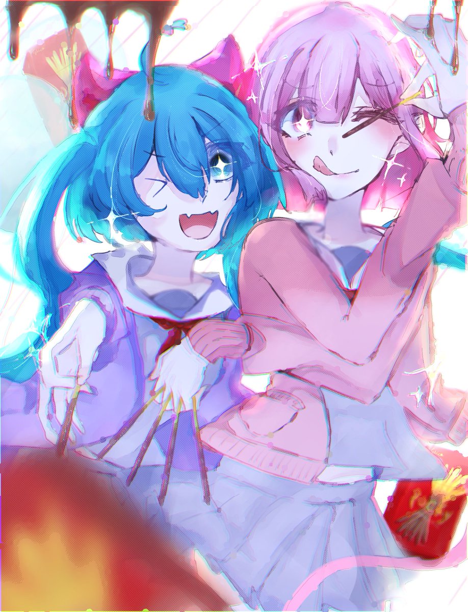 ポッキーの日のイラストです!!!まぁだいぶ遅れたけどセーフでしょう!! えむちゃんとだしょミク描かせてもろたー! #prsk_FA #鳳えむ #ダショミク #お絵描き好きさんと繋がりたい