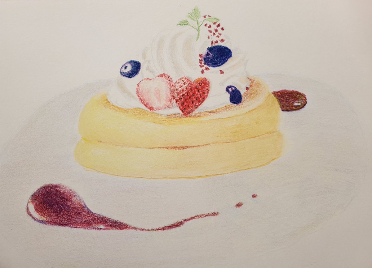 パンケーキ🥞描きました😊 クリームが難しかったです🤔 #色鉛筆画