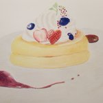 5 166 パンケーキ🥞描きました😊 クリームが難しかったです🤔 #色鉛筆画 22/02/06 18:18