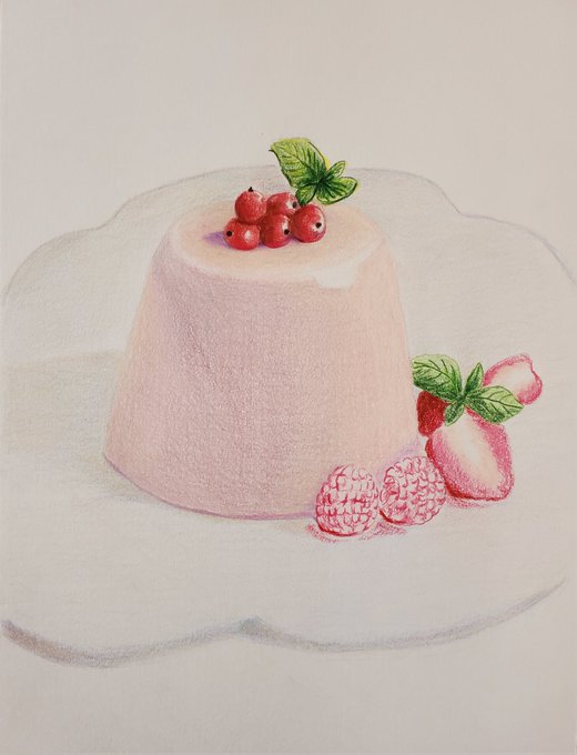 ババロアを描いてみました🎂 頑張りました(≧▽≦)و #色鉛筆画