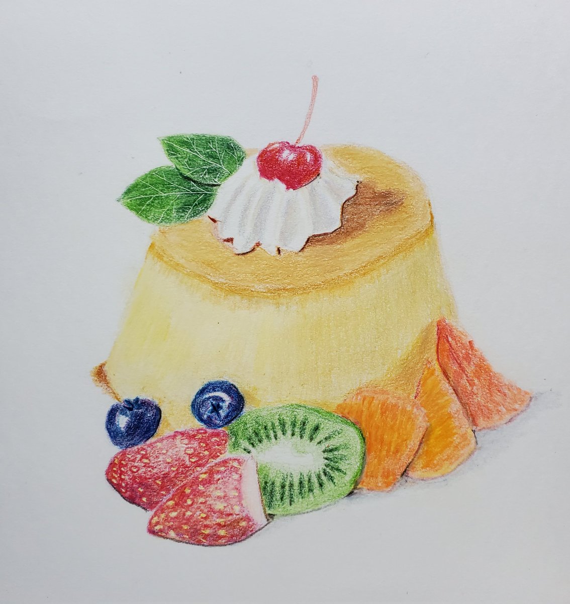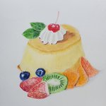 プリンアラモードを描きました🍮 頑張りましたo(*・ロ・*)o #色鉛筆画