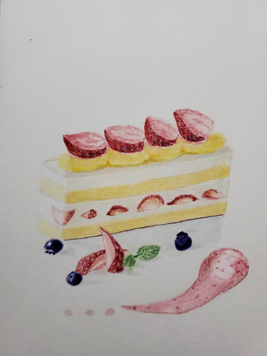 6 102 シュスかな?ケーキの名前分からないけど描きました🍓🎂 #色鉛筆画 22/02/25 19:59