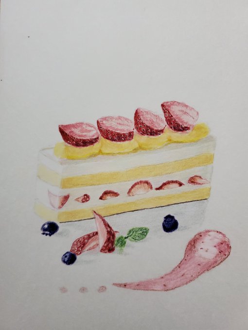 シュスかな?ケーキの名前分からないけど描きました🍓🎂 #色鉛筆画