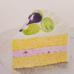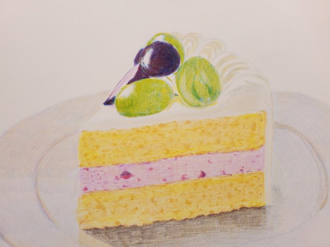 ぶどうのケーキ描きました🍇 スポンジが難しかったです(*^^*) #色鉛筆画