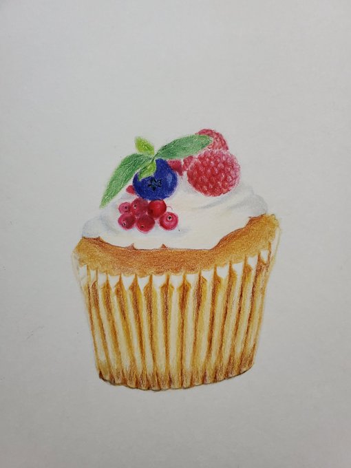 カップケーキ🧁描きました😊 頑張りました\\└('ω')┘//// #色鉛筆画