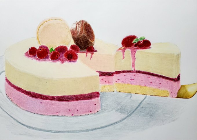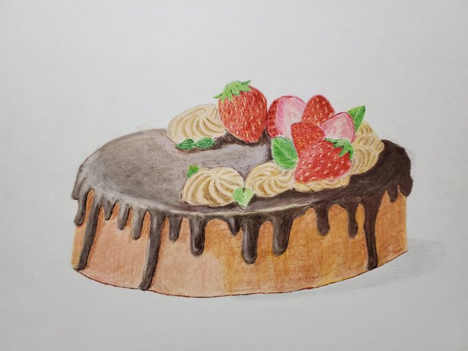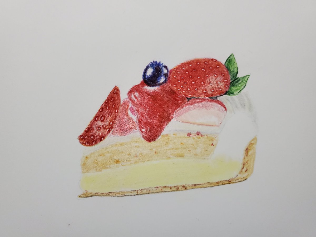 ケーキ🍰描きました🎂 #色鉛筆画 #カリスマカラー #スイーツ