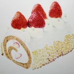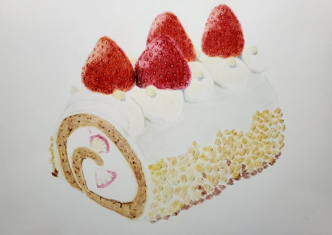 イチゴのロールケーキ描きました🍰💗🍓🍓 #色鉛筆画