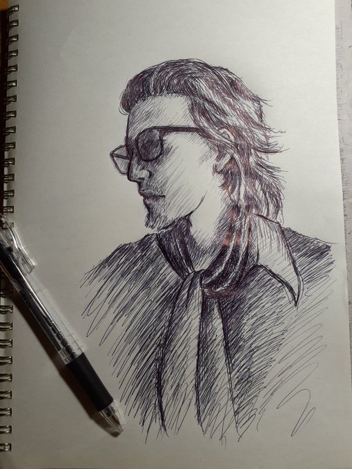 #らくがき #ボールペン 連投、失礼します (。-人-。) 昨日、描いた落書きです