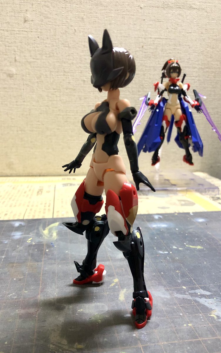 6 26 MUSCUTOさんのスク水とコトブキヤさんの朱羅影衣用の改造パーツの組み合わせです。 #メガミデバイス #スク水 22/02/11 21:21