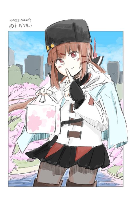 104 298 #艦これ版深夜の真剣お絵描き60分一本勝負 #艦これ版真剣お絵描き60分一本勝負_20230329 「ねえ、あたしと二人っきりでお花見しない? あの酒飲み二人には内緒でさ…!」 23/03/29 23:36