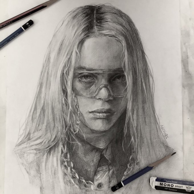 鉛筆でビリーアイリッシュを描きました。久しぶりの割には上手く描けた気がする、 #鉛筆画 #ビリーアイリッシュ