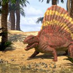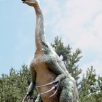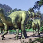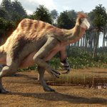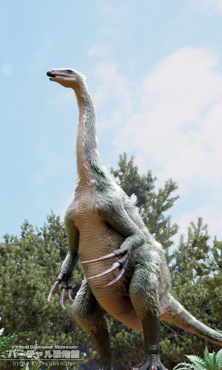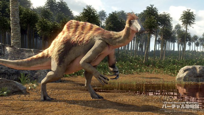 #デイノケイルス 背景付けました! 長らく巨大な腕の化石しか見つかってませんでしたが、全身見つかってみれば、腕はデカいし、背中盛り上がってるし、アヒル口だし……変な姿の恐竜でした。 #blender #b3d #blenderart #Deinocheirus #恐竜 #dinosaur #paleoart #paleontology #バーチャル恐竜館