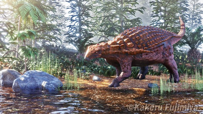 Blenderで「ステゴウロス」作りました! 昨年末に発表された新種で、全長2mと小さいが「ステゴサウルス」と「アンキロサウルス」の両方の特徴を併せ持った面白い恐竜。 #ステゴウロス #Stegouros #b3d #blenderart #Blender3d #恐竜 #dinosaur #paleoart #paleontology #バーチャル恐竜館