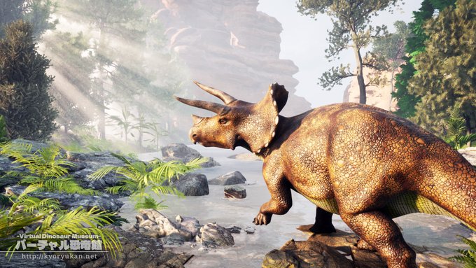 #blender で #コアフイラケラトプス 作りました! メキシコで見つかった角竜で、フリルは小さいけど角が立派なのが特徴。 目の上の角は長さ1.2mもあり、あのトリケラトプスの角より長かったとも言われています! #Blender3d #Coahuilaceratops #恐竜 #dinosaur #paleoart #バーチャル恐竜館