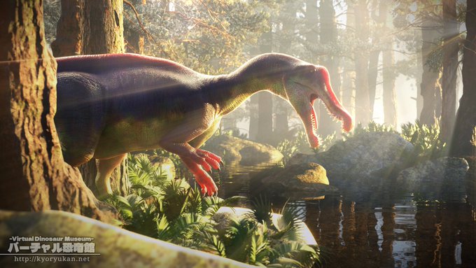 #Blender で #ギガノトサウルス 作りました! 先日の映画でも活躍した巨大な肉食恐竜。 カルカロドントサウルスやアロサウルスの仲間ですが、それらの中でもがっしりした体つきをしていました! #Giganotosaurus #blenderart #b3d #恐竜 #dinosaur #paleoart #paleontology #バーチャル恐竜館