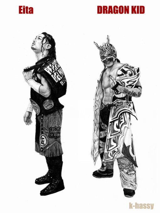 ドラゴン・キッド選手とEita選手を描きました✍️ ステキなコンビ‼ #ドラゴンキッド #Eita #似顔絵 #鉛筆画 #イラスト #DRAGONGATE #プロレス