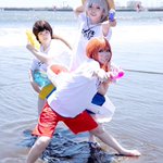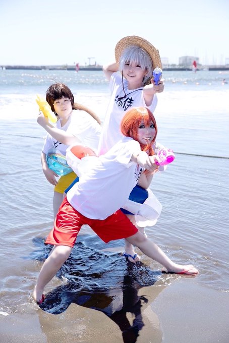 ビーチの平和は『万事屋銀ちゃん』におまかせあれ!🏖 #江ノ島コスプレ祭 #Cosplay ¯¯¯¯¯¯¯¯¯🔫💦 銀時:@k_kage_2 神楽:@oyasumiOxO 新八:@yuzudejipon0411 📸:@yuuk70423さん