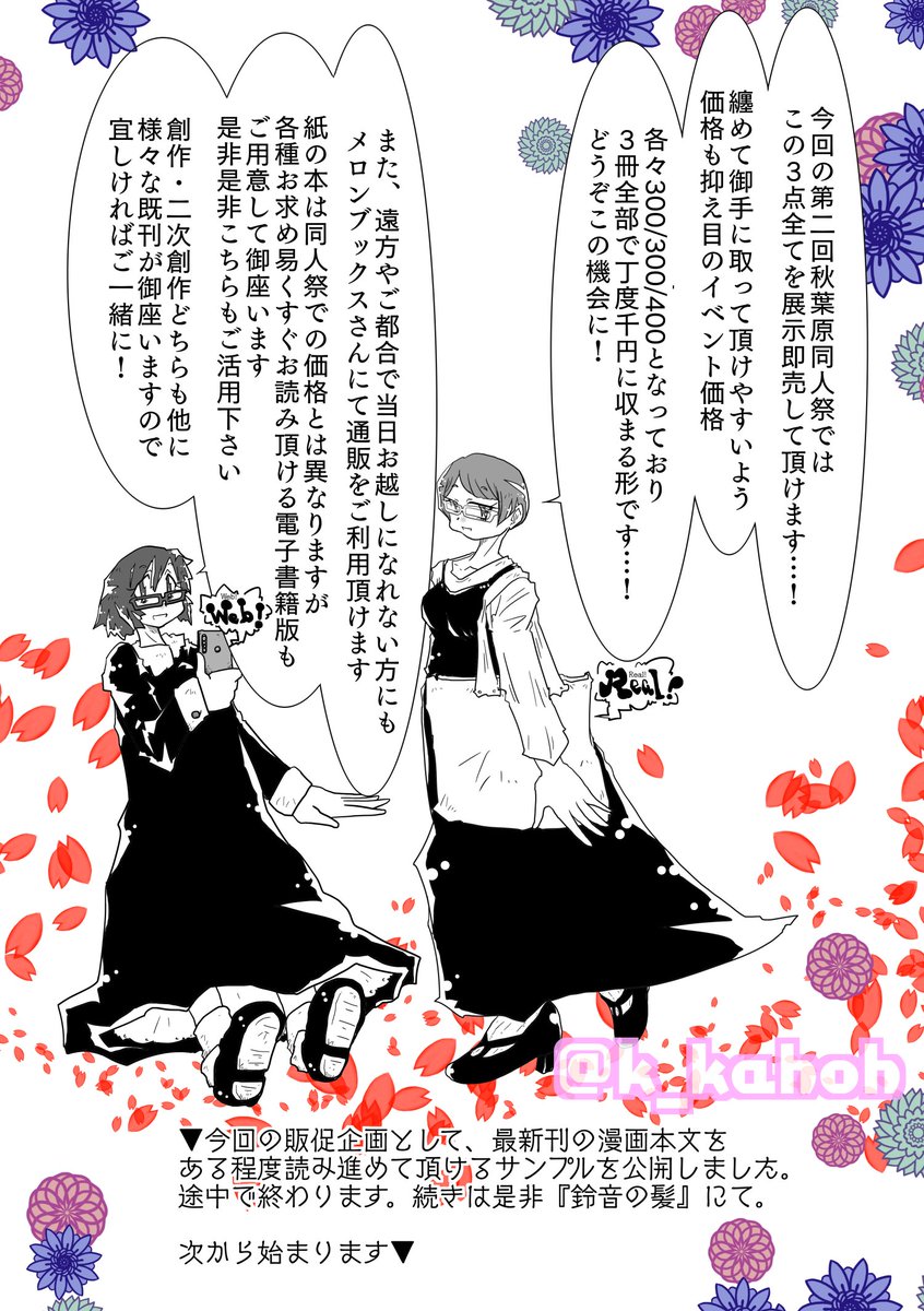 想い人を亡くした少女が未来を向くための御話[1/4] 10/31まで期間限定で自費出版各種セール中です▼ melonbooks.co.jp/circle/index.p… 関連販促とハロウィン目前企画として今年刊行した二次創作既刊をある程度読み進めて頂けるサンプルを公開しました🎃 ご参考までに是非どうぞ #漫画が読めるハッシュタグ