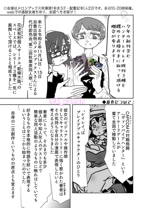 2020/11/14-15開催 メロンブックスさんの第二回秋葉原同人祭で、CAPCOMヴァンパイアハンター・レイレイ中心のファンジン既刊3種を纏めて御手に取って頂けます…!(web会場も在り〼 自身の原点と想い入れ、原作解説と案内の漫画 進行役はウチの子達[#星の虹彩]です #漫画が読めるハッシュタグ