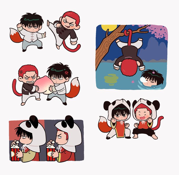 ボクらはなかよし双子のパンダ~🎵 🦊🌸🐼🐼