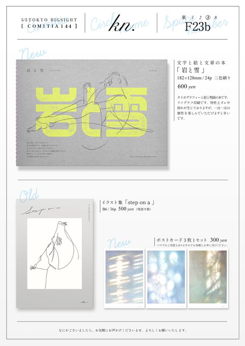 コミティア141のお品書きです。 今回50円という端数をもうけておりますので、お手数おかけいたしますが、お求めをお考えの方はお釣り銭などにご協力いただけますと大変助かります。 よろしくお願いいたします。 #コミティアお品書き