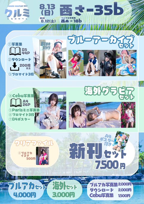 明日のC102 1日目は、 ホシノ先生(@hoshinoouka )のブースで売り子です! ブルアカコスプレ写真集の委託もさせて頂きます(* ॑꒳ ॑* )💕 水着ミヤコのコスをしようかなーと思ってますー! お待ちしております(ᐥ꒳ᐥ ) twitter.com/i/web/status/1…