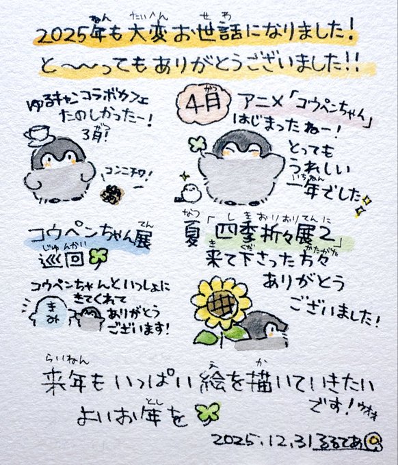 新作画集「コウペンちゃん 四季折々展のすべて」が発売中です🍁 2023年の四季折々展 2025年の四季折々展2 開催中に展示・販売した原画をすべて収録した画集です🌸 大きなサイズ&ハードカバー&金色の箔押しの豪華な一冊となりました✨ お手にとってもらえたら嬉しいです! shufu.co.jp/bookmook/detai…