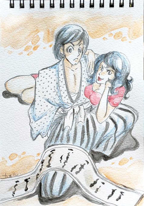 こっちも色入れてみた。色の違いが分かりやすいかなー? #ルパン三世 #ペン画 #イラスト練習 #模写