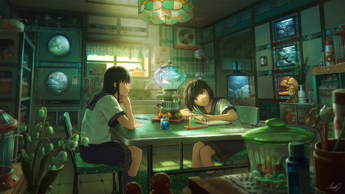458 3036 #今年も残りわずかなのでお気に入りを貼る 来年はレトロ×水没の世界観の絵をもっと描いてみたい! 22/12/23 17:39