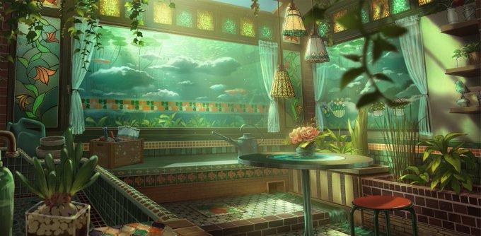 #今年も残りわずかなのでお気に入りを貼る 来年はレトロ×水没の世界観の絵をもっと描いてみたい!