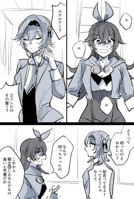 2034 20.3K 騎士団に入団が決まったエウルアとアンバー。昔は髪の長さ逆だったらいいなって話(1/2) #原神 23/07/18 19:40