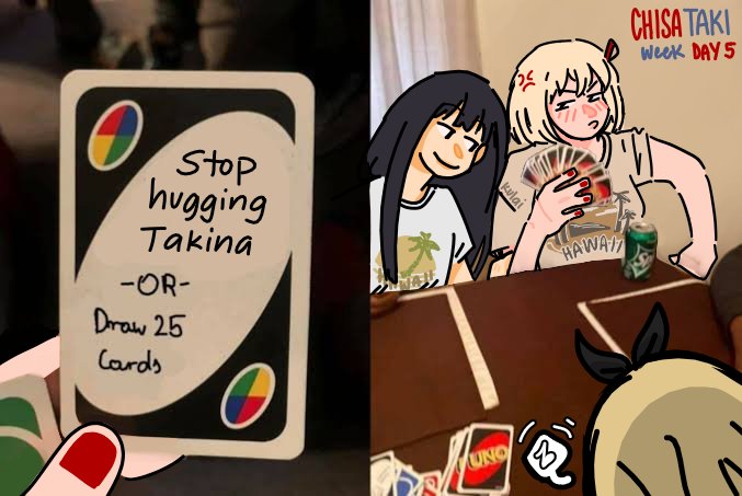 #chisatakiweek day 5 (assuming uno is a boardgame) #LycorisRecoil #ちさたき #リコリス・リコイル #リコリコ #fanart @chisatakiweek