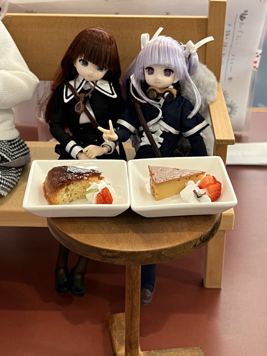 #アサルトリリィドール部 @kissa_kurousagi さんにお邪魔しました〜 お店にも色んなドールがあって楽しかったです。あとサービスで付けてもらったドールサイズのお菓子のクオリティが凄すぎる🥰 ありがとうございました