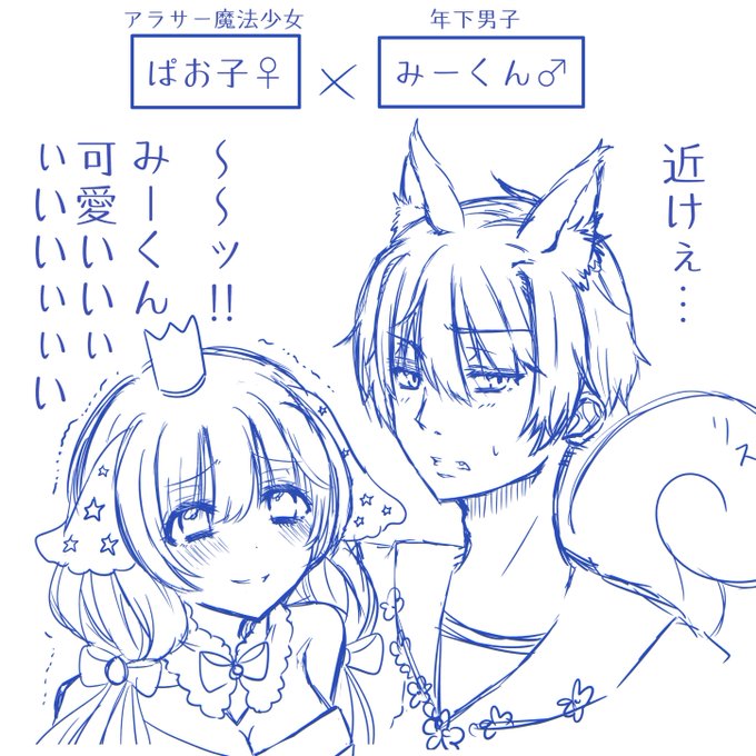 自創作『魔法少女は、春をゆく』 ぱお子♀と、みーくん♀を、男性化して遊びました。 (男性を描くのは約15年振りで…色々とすみません……) 素敵な企画をありがとうございました🙏 ぱお子♂は、頭ふわモジャ笑顔胡散臭オッサン。 みーくん♂すこ。 #もしも美少女絵描きがオリキャラを男性化したら