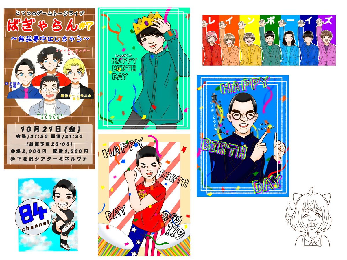 #今月描いた絵を晒そう その2️⃣ 来月もTV出演時や動画のひとコマイラスト描いていきたいです〜😆