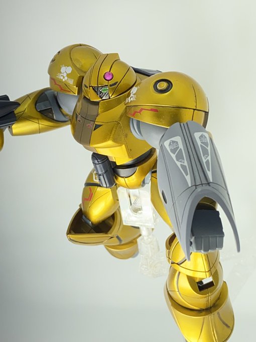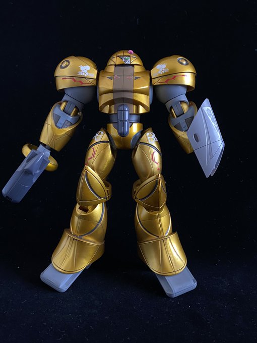 ゴールドスモー完成です。完成後のパーツ接続中に、ビームライフルの接続パーツを破損(⌒-⌒; ) とりあえず接着剤で修復したけど、作成途中ではなく完成して撮影する直前に破損とは笑うしかない…w #ガンプラ好きと繋がりたい #ガンプラの画像を貼るとRTされると聞いて #ガンプラ #ガンダム