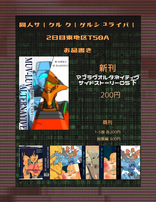 明日のC1002日目のお品書きになります! 遅くなりすいません! 暇な方ぜひ来て下さいね~ よろしくお願い致します #C100 #コミックマーケット100 #マブラヴオルタネイティヴ #マブラヴ