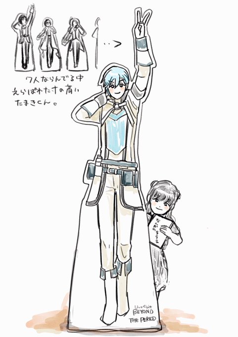 266 1516 昨日パネルを撮ろうとしてたら見かけた光景なんですが、7人のアイドルパネルを見て「これがいいー!」と183cmの寸の高いアイドルに駆け寄りお母さんに写真を撮ってもらっている女の子がいましてあまりに癒されました。(絵は記憶の片隅からひっぱりだしてきて描いたので別人) 23/07/16 16:47