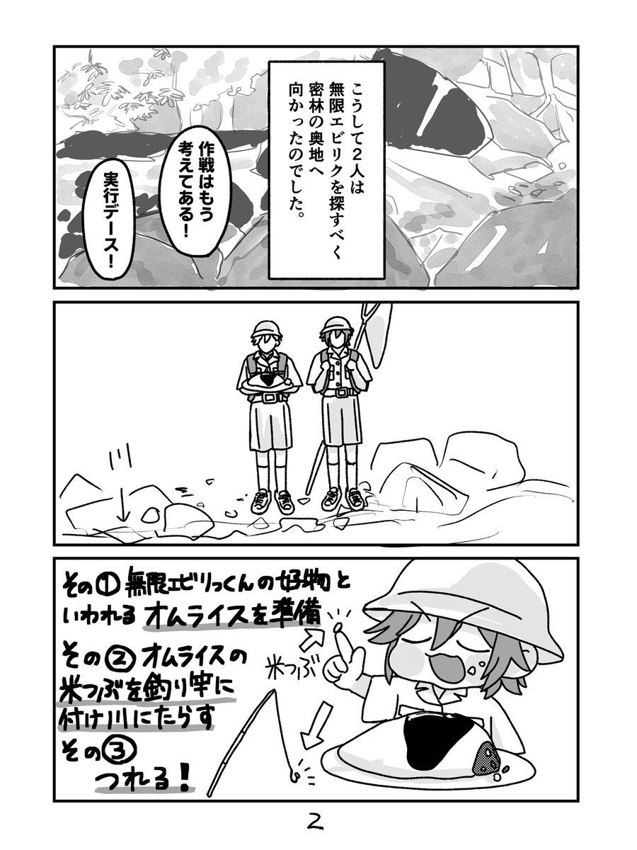 今日のインテで無配で置いてました、エビリクを探しに環くんとナギくんが密林へ行くお話です。1/2