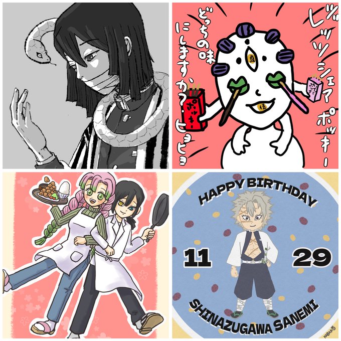 #今月描いた絵を晒そう 今月は🎥上映開始したりイベントがあったりと楽しいことも多かったですね☺️ 里編のアニメも近づいてきてワクワクです☺️💕 (🐍さんメイドはポイにあげたけどコッソリここで公開🤣) 今月も見てくださりありがとうございました✨