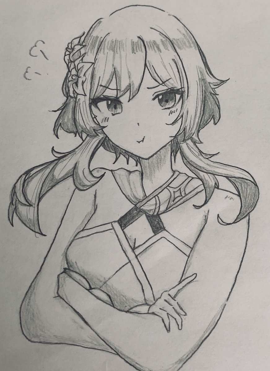 #フォロワーさんの推しが描きたい #絵描きさんと繋がりたい 原神の蛍ちゃん描きましたぁぁ! 原神やったことないけど可愛いな…これが女主人公なのか…好き…🥰🥰 拗ねた蛍ちゃん最高でした(⑉• •⑉)♡