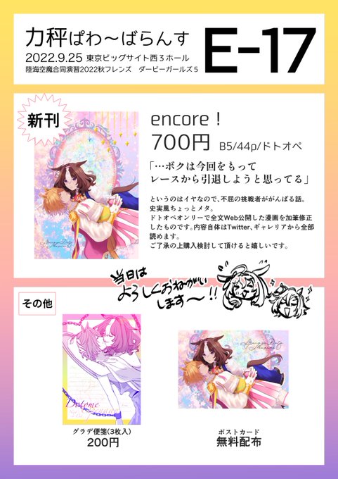 ダービーガールズ5のお品書きになります。pixivにも同じものを上げました。 当日はよろしくおねがいします〜!! お品書き pixiv.net/artworks/10131… 新刊サンプル pixiv.net/artworks/10132…