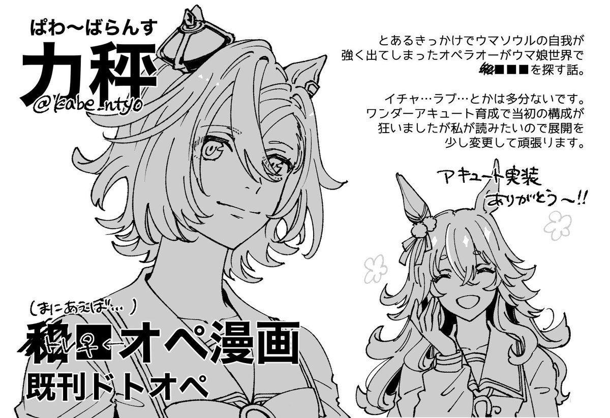 オペラオーとアキュートトレーナーの話(アキュート育成感想漫画) 顔有りトレーナー出てきます。トレオペ この漫画はプリステ新刊に収録予定です。 melonbooks.co.jp/detail/detail.…